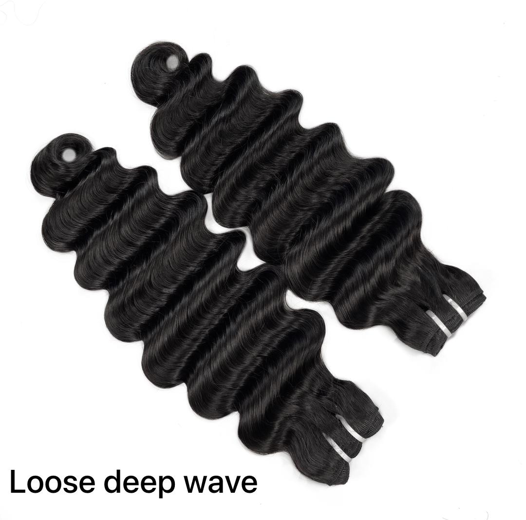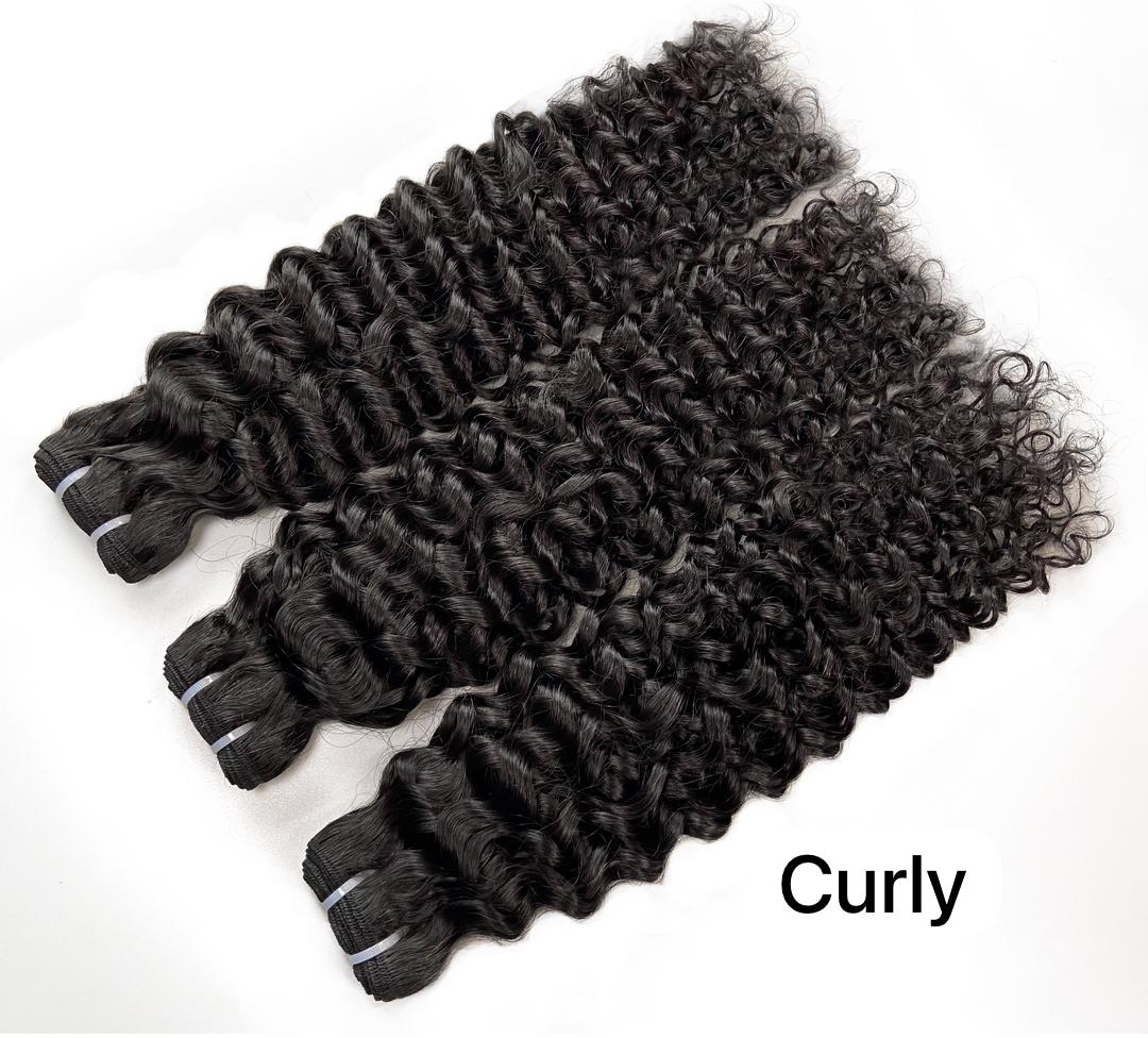 3 bundles of our premium quality hair. Each bundle is natural black in color and 100g density.